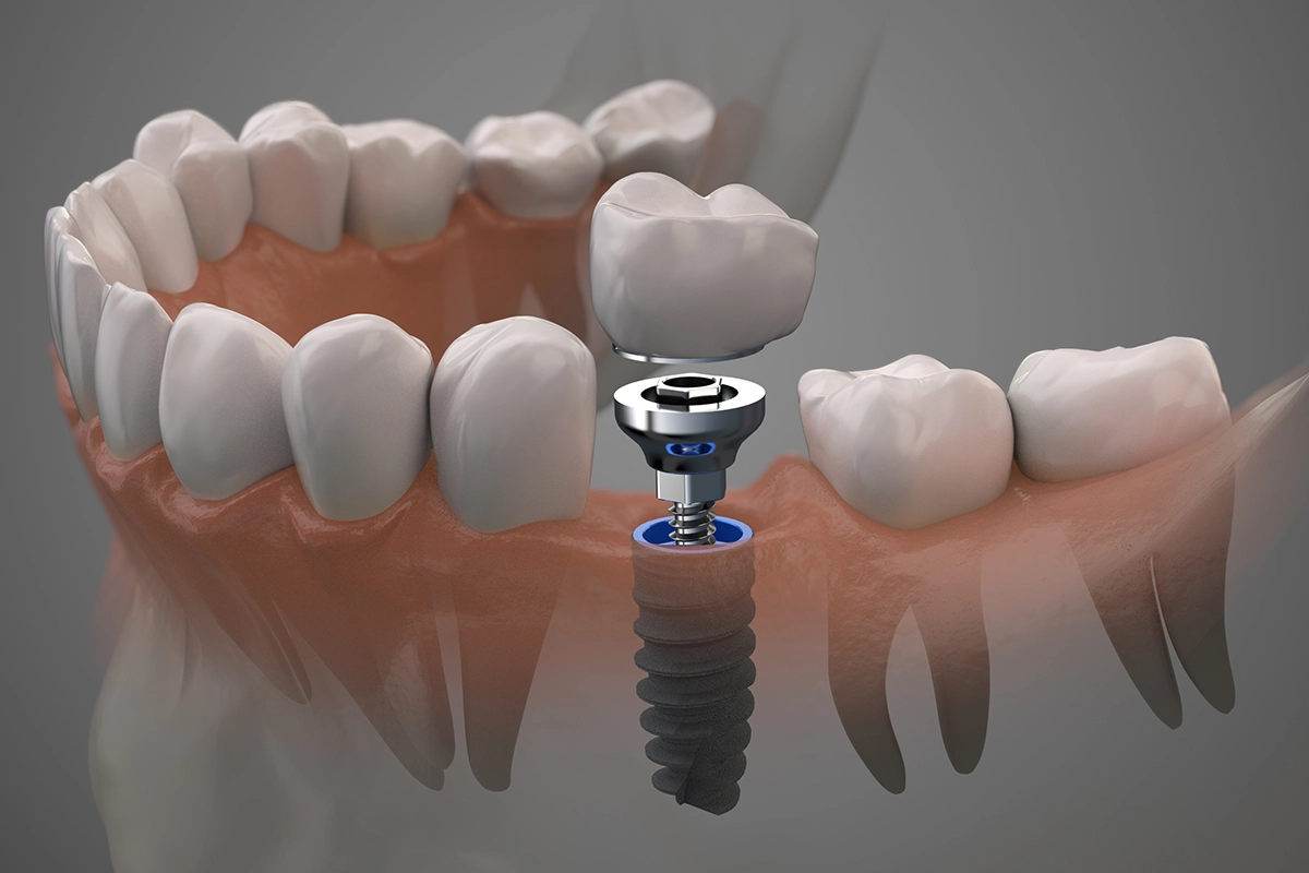 First, the dental implant post, which is a small screw-like piece, is surgically placed in your jawbone. This replaces the missing tooth root and ensures that your restoration is stable and strong.